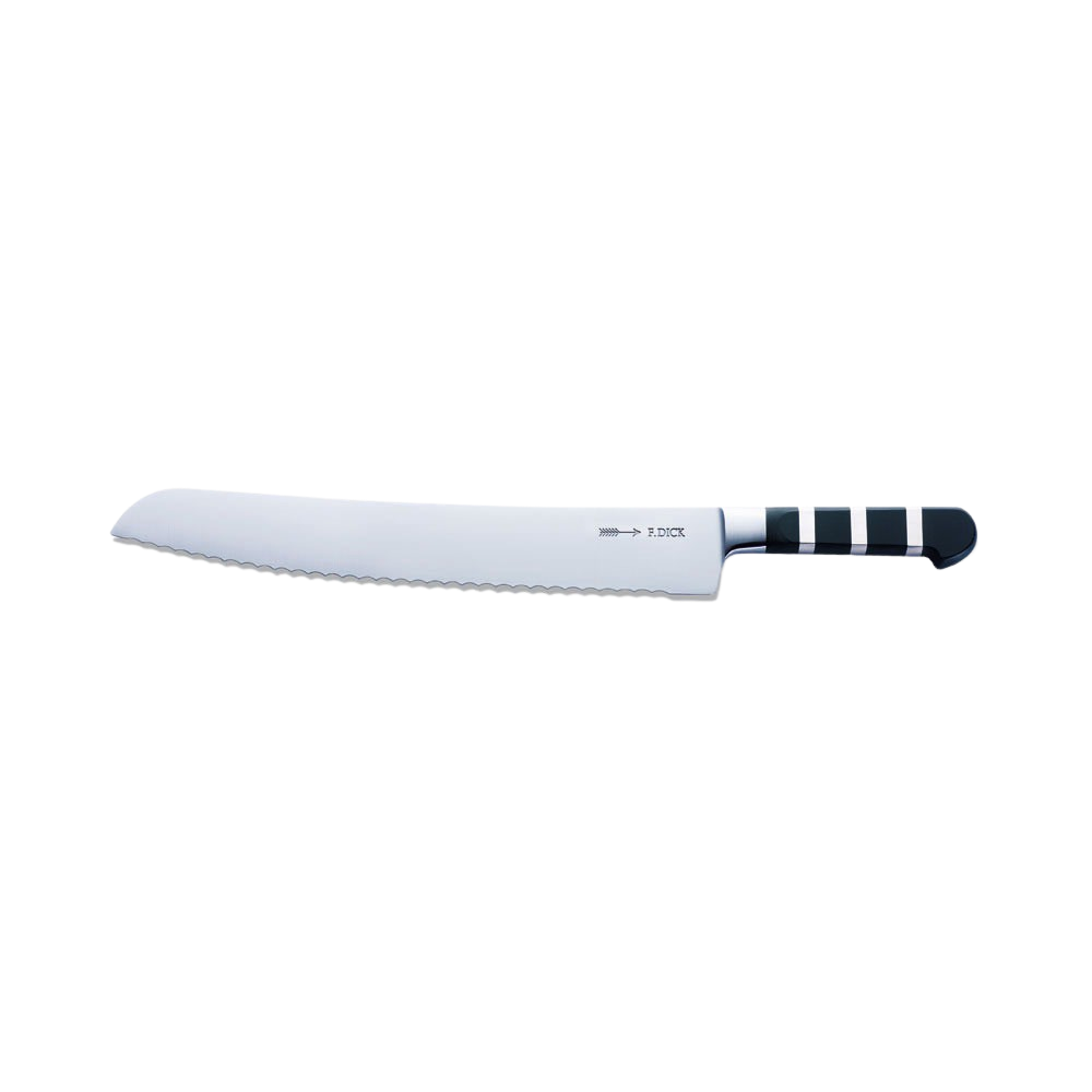 Spezielles Messer aus der klassischen, geschmiedeten Design-Serie 1905 mit zackigem Wellenschliff für alle harten und weichen Brotsorten. Mit dem Brotmesser erreichen Sie einen sauberen Schnitt erhalten gleichmäßig geschnittene Scheiben. Auch für Obst und Gemüse mit harter Schale ist dieses Messer bestens geeignet. Die Serie 1905 verknüpft gekonnt Tradition und Moderne durch die Neuauflage des historischen Designs. Im Jahr 1905 entwickelte Friedr. Dick eine Kochmesserserie mit massiven Zwingen, die die bisher üblichen Nieten ersetzten. Damals wie heute besticht die Serie durch ihre besondere Optik. Die 26 cm lange Klinge ist aus X55CrMoV14-Stahl und auf extreme Schärfe ausgelegt, der Griff ist aus Kunststoff. Die ausgewogene Härte von 56° HRC ist der ideale Kompromiss für perfekte Schnitthaltigkeit und leichtes Nachschärfen.