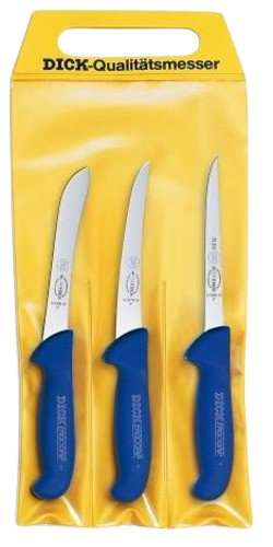 Das 3 teilige Messerset von F.Dick darf auf keinen Angelausflug fehlen.Das Set besteht aus folgenden Messer:1 x 82369150 (Sortiermesser)1 x 82278150 (Ausbeinmesser)1 x 82980150 (Ausbeinmesser)Alle Messer haben die Grifffarbe: blau.